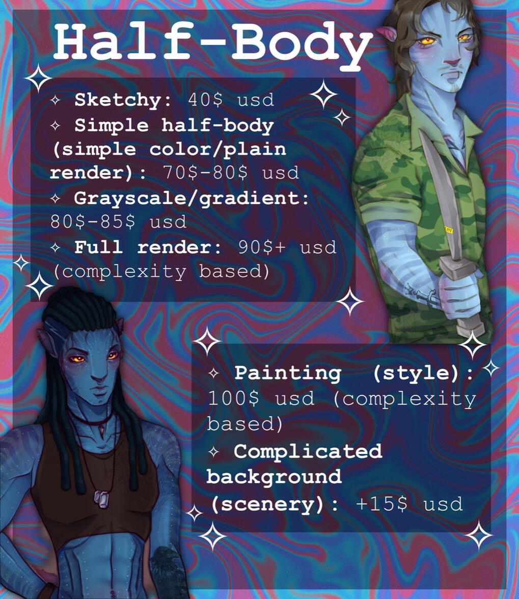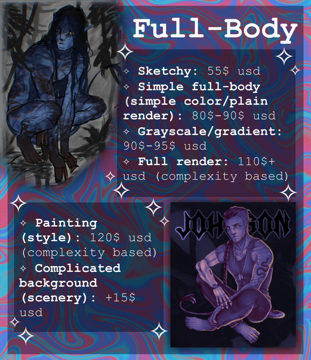 ✧ Payment through PayPal or Kofi (if it’s a small commission) ✨✧ For any clarification or questions feel free to DM me! ✨ ✧